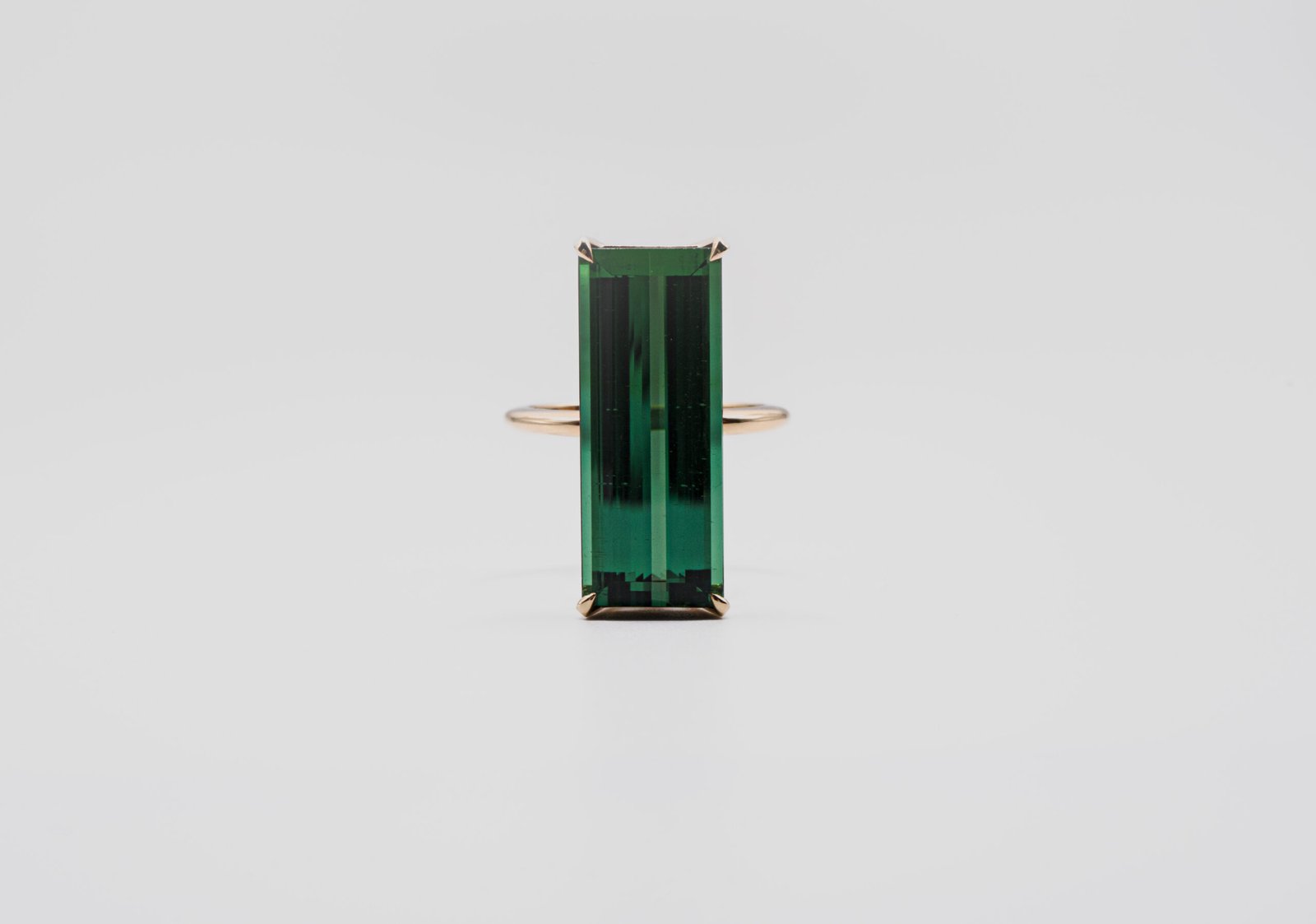 Atelier Heldwein “Hero” ring 6.5g 750/000 yellow gold 1x green tourmaline 15.16ct. Ring size 56