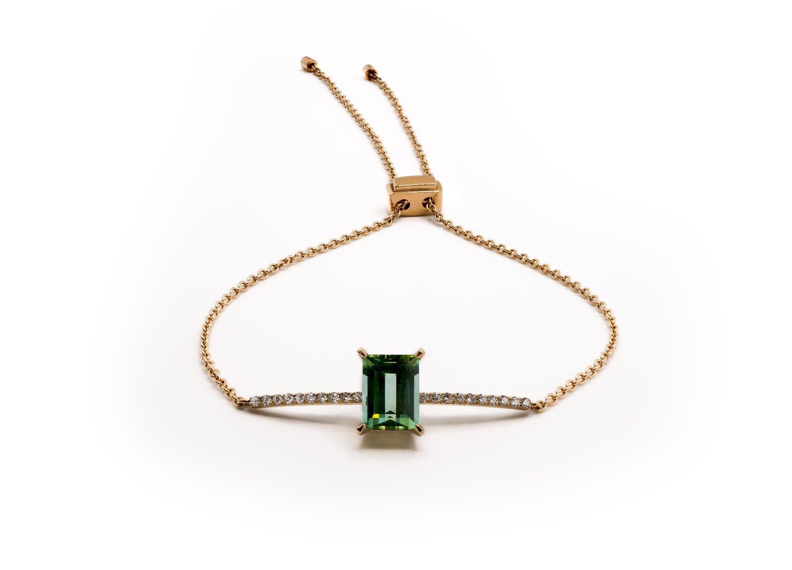 Atelier Heldwein „Herolino“ Armband 4g 750/000 Gelbgold 1x afrikanischer grüner Turmalin 1,70ct. 20x Diamanten Brillant 0,13ct.