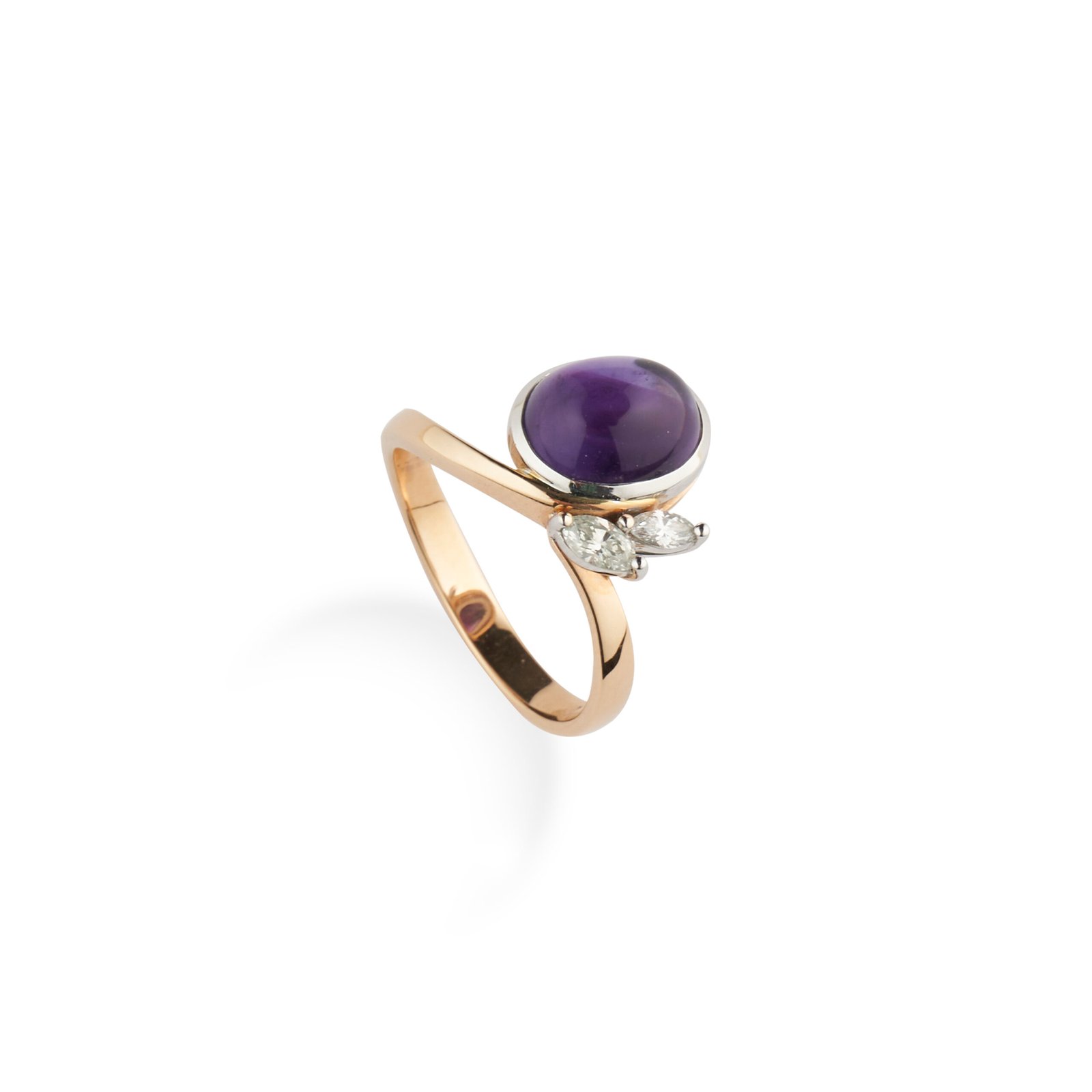Atelier Heldwein „La Fleur“ Ring mit Amethyst 4,20g 750/000 Roségold/Weißgold Amethyst Cabochon 2,86ct. Diamant G/F VVS Marquise 0,07ct. Diamant G/F VVS Marquise 0,13ct. Ringgröße 55